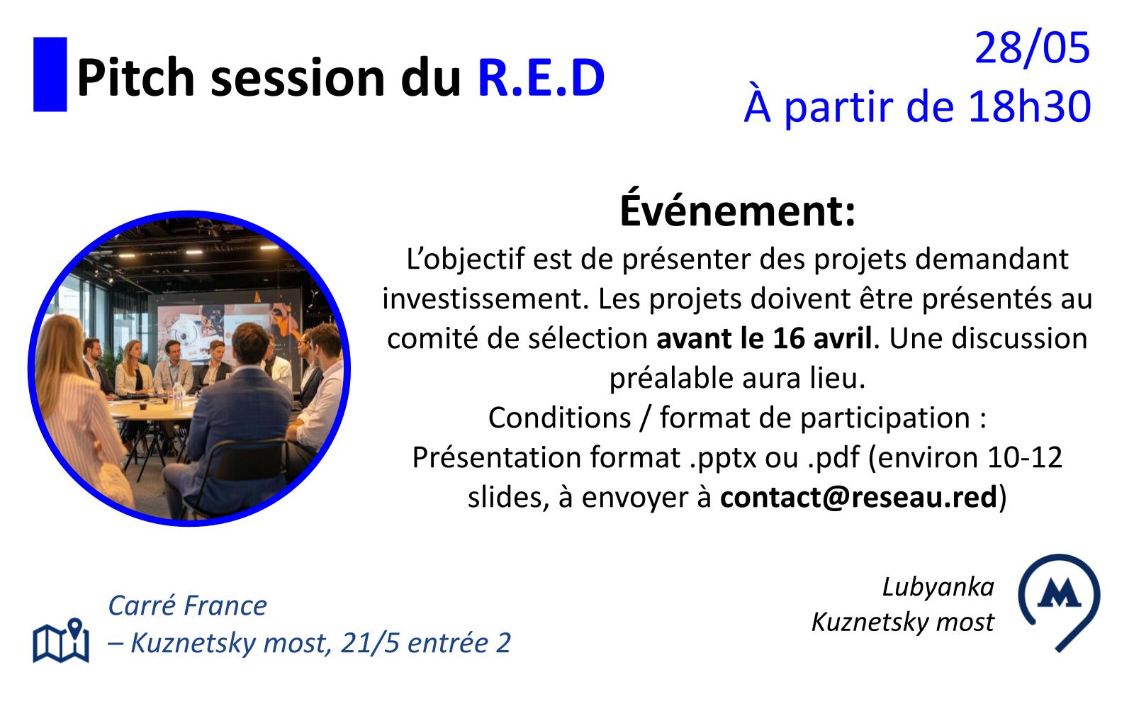 RED annonce une nouvelle Pitch Session pour 28 mai 2026 en soirée.